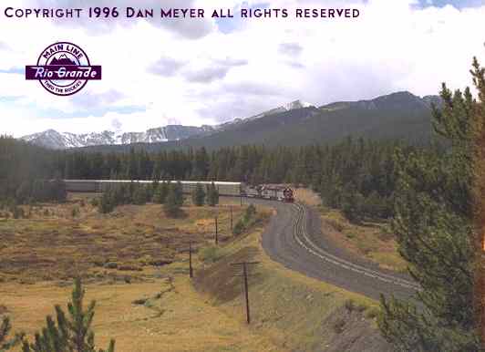 Here is Dan and Dawn's guide to Tennessee Pass. The Object of this guide is to show how easy it is (was) to take great railroad photographs along this route. A couple of resources we recommend are both the Delorme Colorado Atlas, and the Altamont Press railfan timetable. Both are invaluable when out chasing the line. All photos were taken by Dan Meyer between September 23rd 1996, and October 2nd 1996. Entire contents, including all photos and documents, of this web page are © Copyright 1998 Dan Meyer, All Rights Reserved. The line will be presented from the east to west.